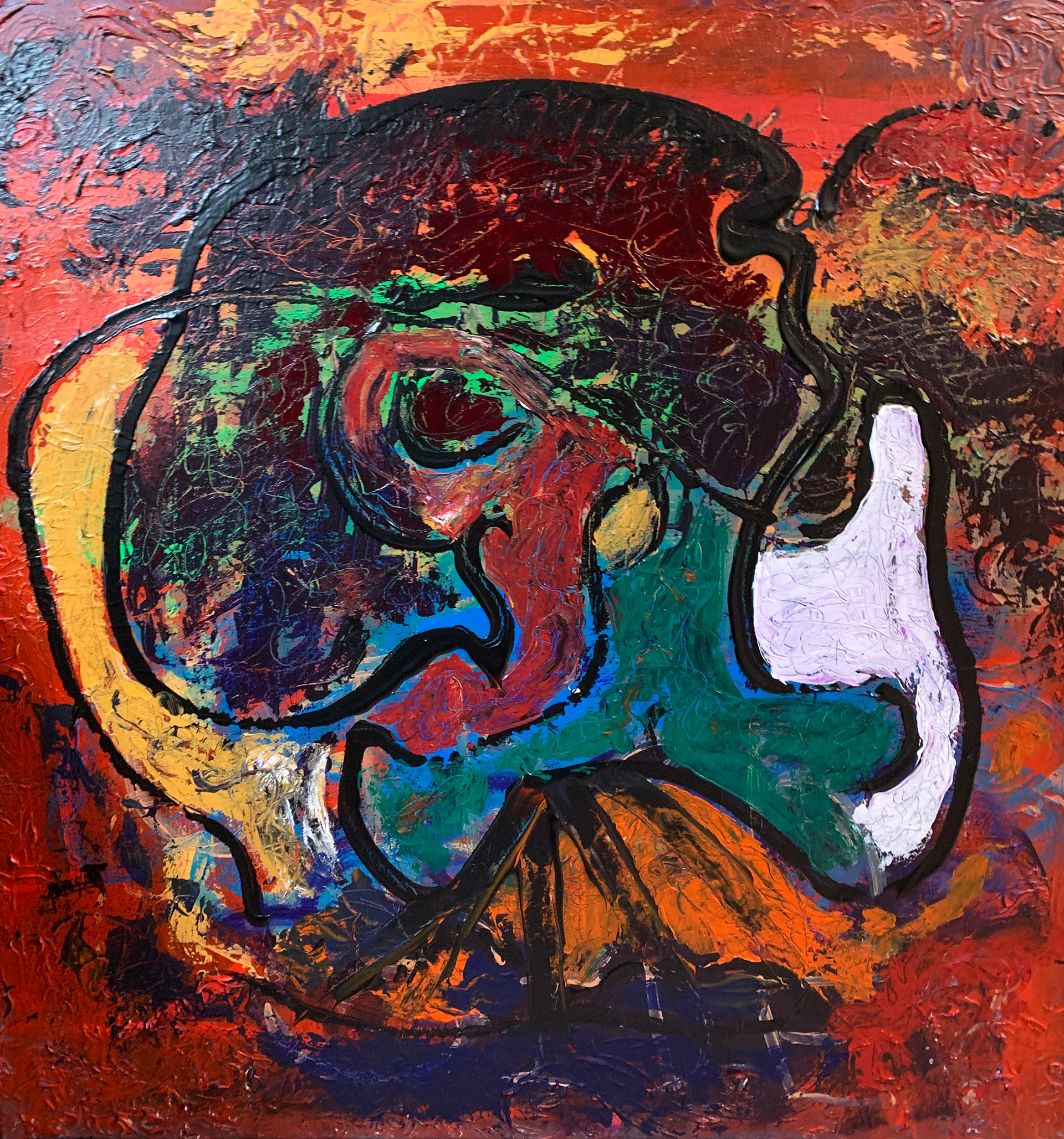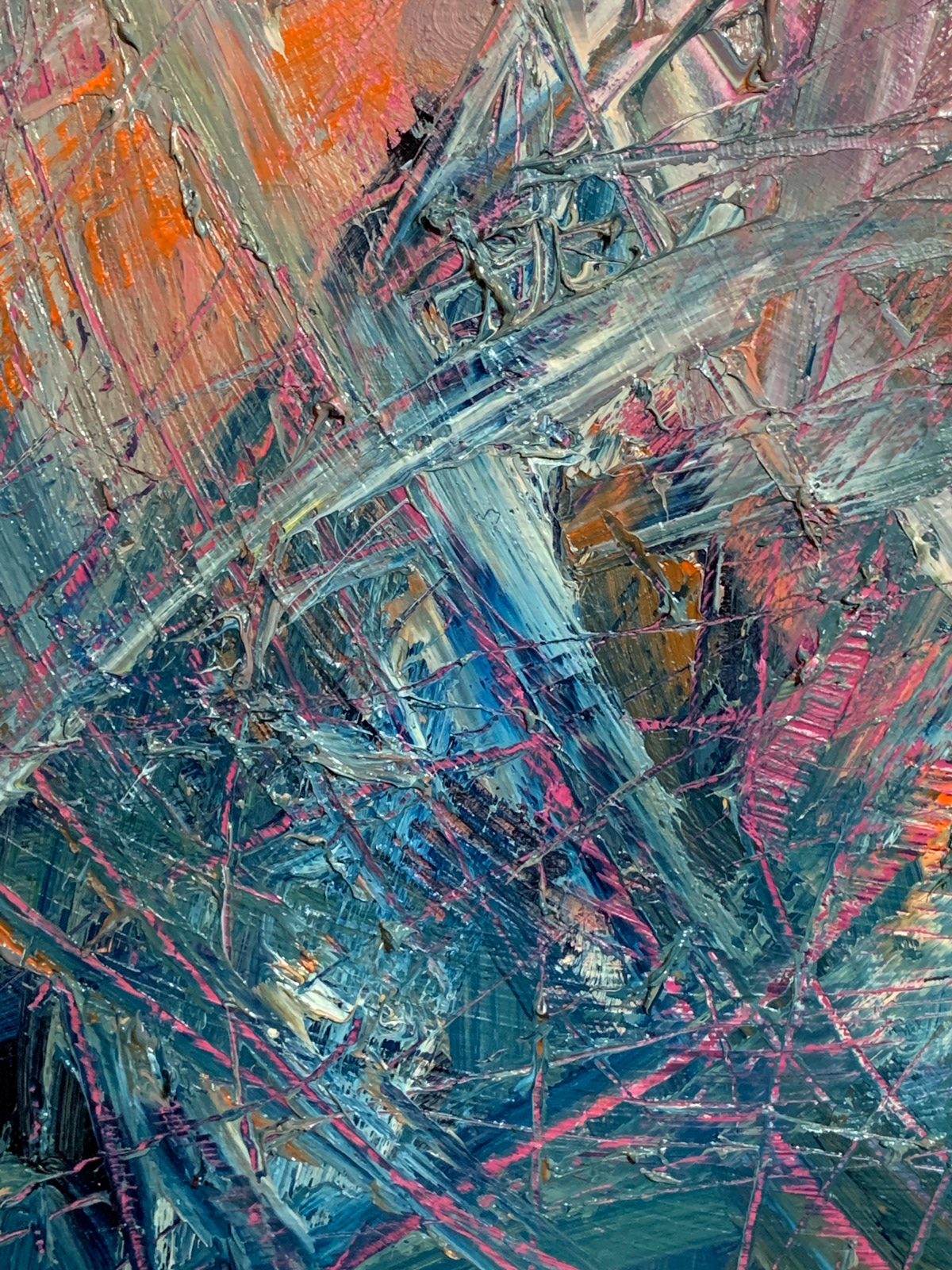 Oil paint and oil pigment stick; 30 x 40 inch wood panel