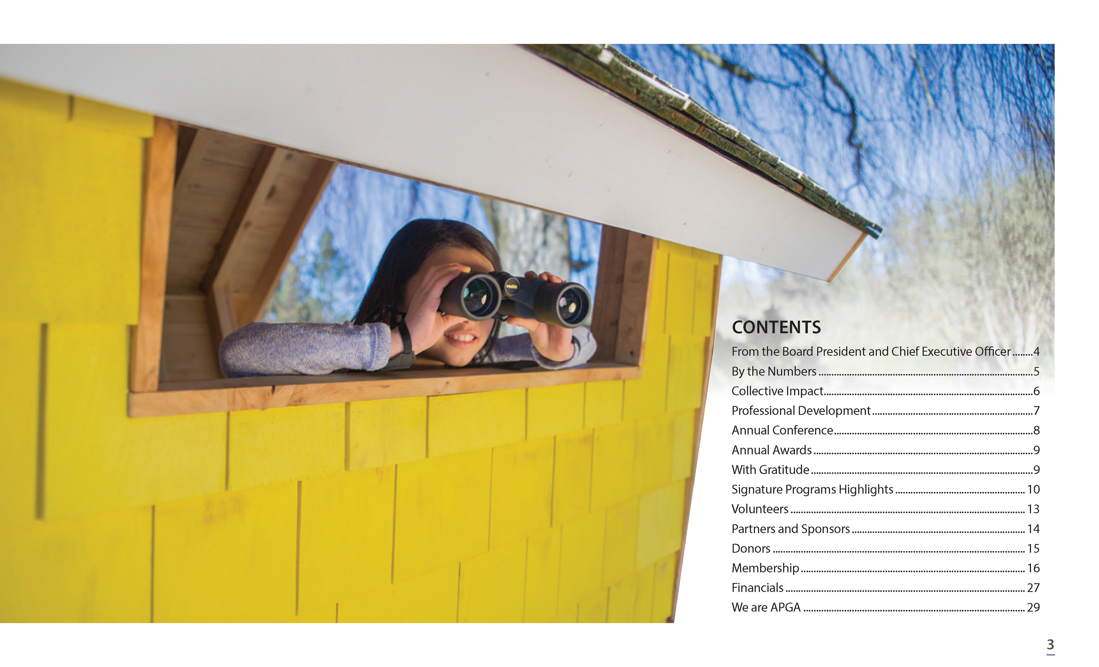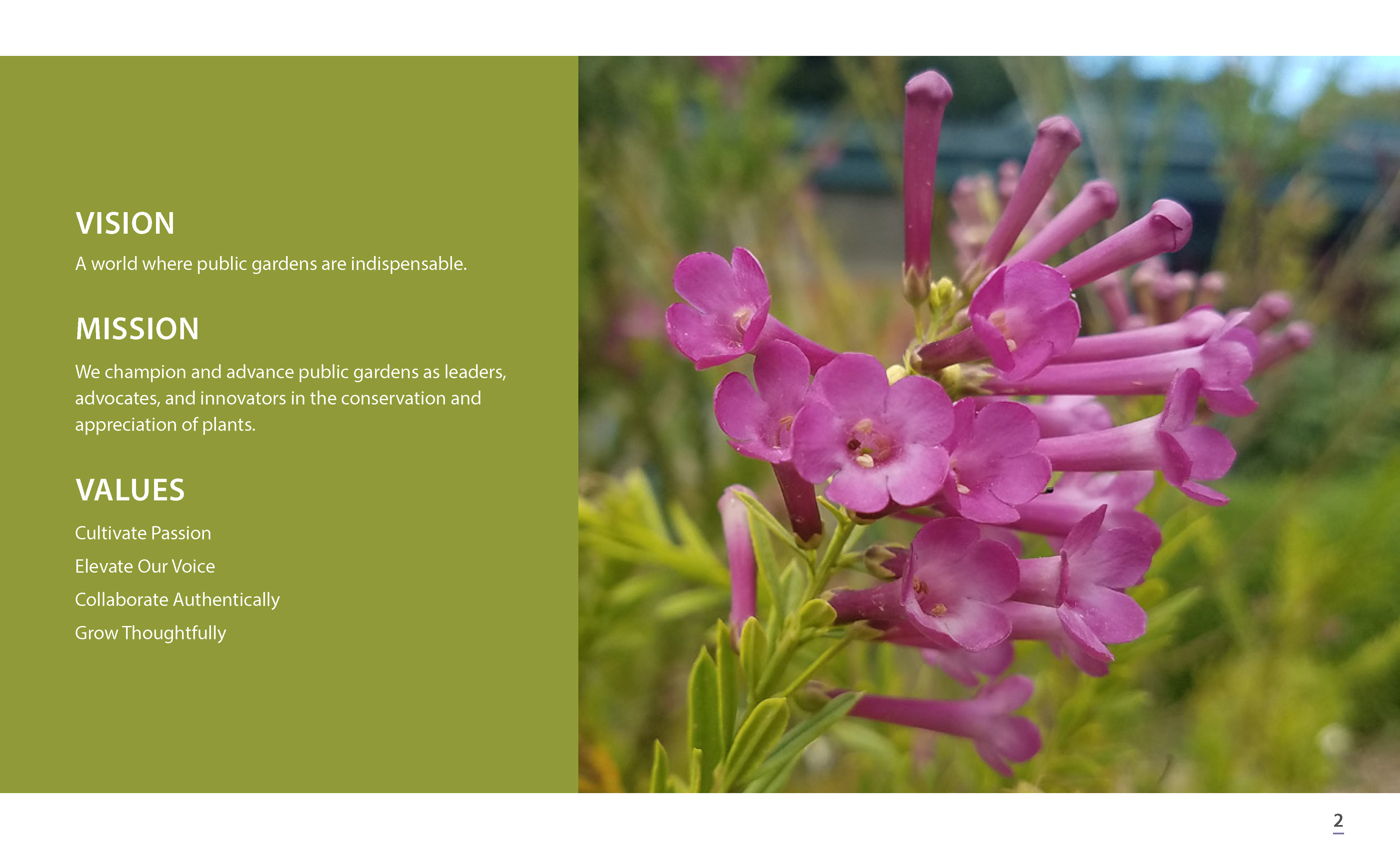 Annual report spread presented in an issue of Public Garden Magazine.