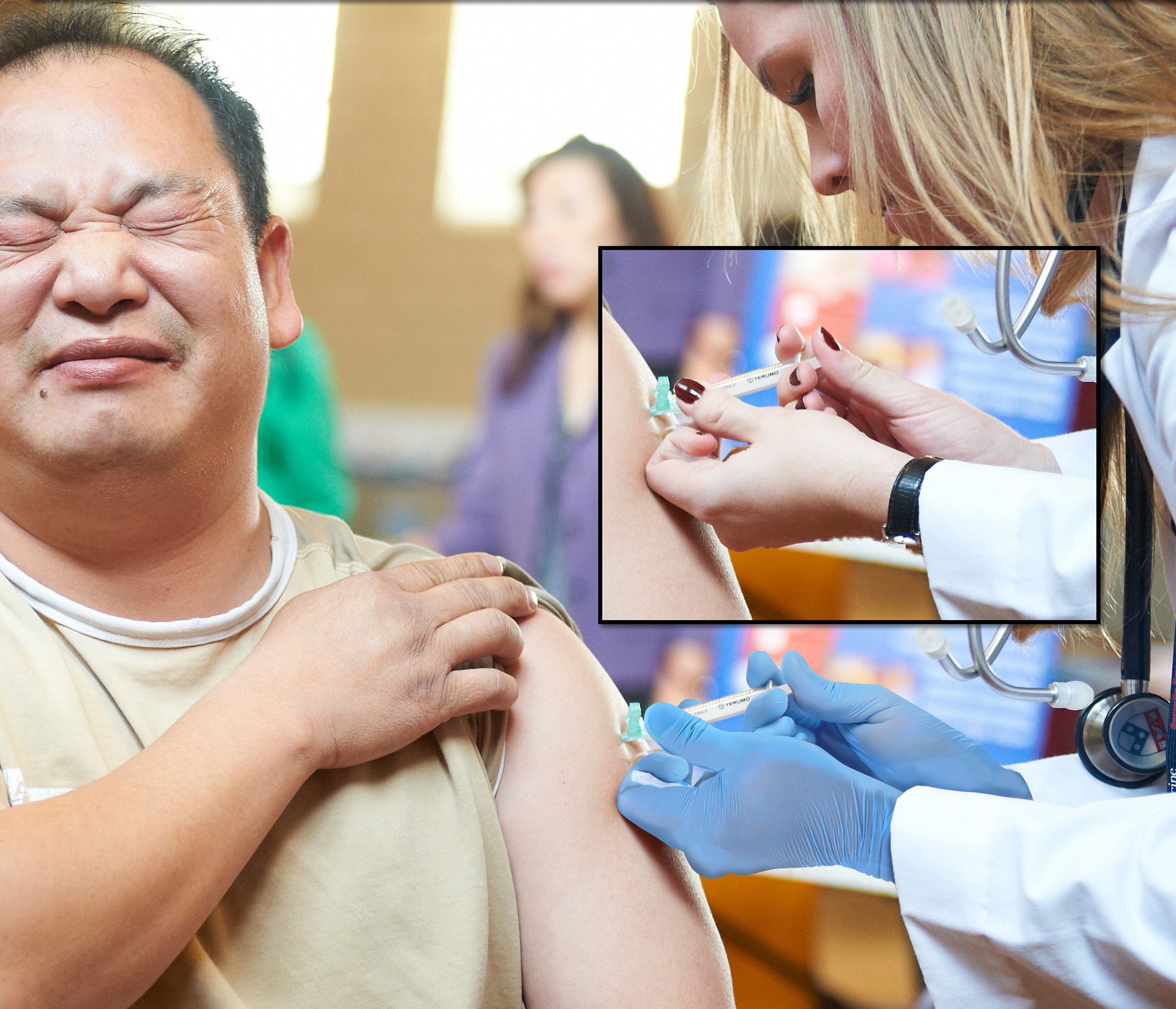 The gloves were not on the medical professional at the photoshoot, so they needed to be Photoshopped in.